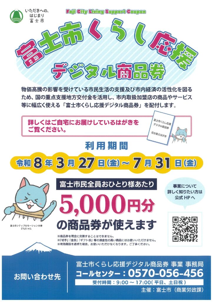 ※富士市くらし応援デジタル商品券は、富士市が実施する生活支援・地域経済活性化事業です。